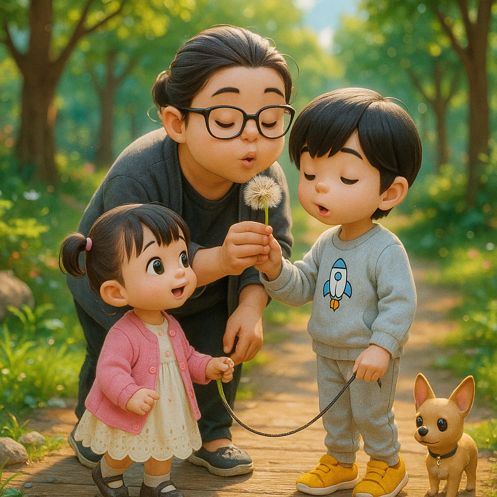 엄마가 달래서 민들레 씨를 불며 웃던 것도 잠시,
