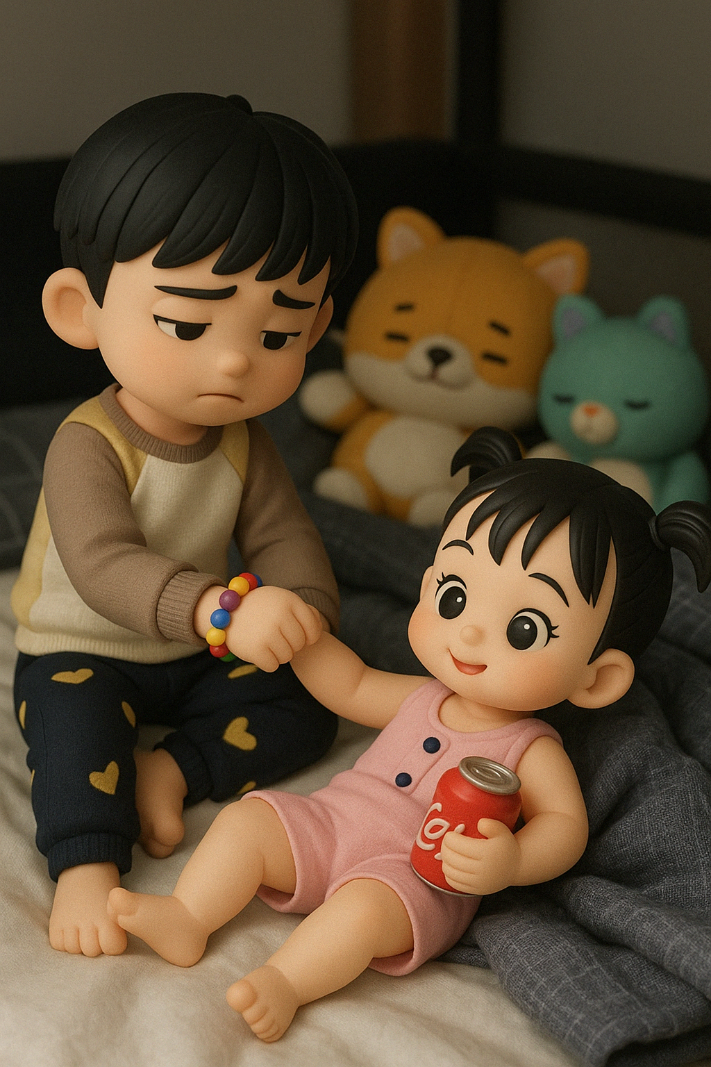 팔찌 → 인형 → 장난감으로 이어지는 끝없는 쟁탈전.