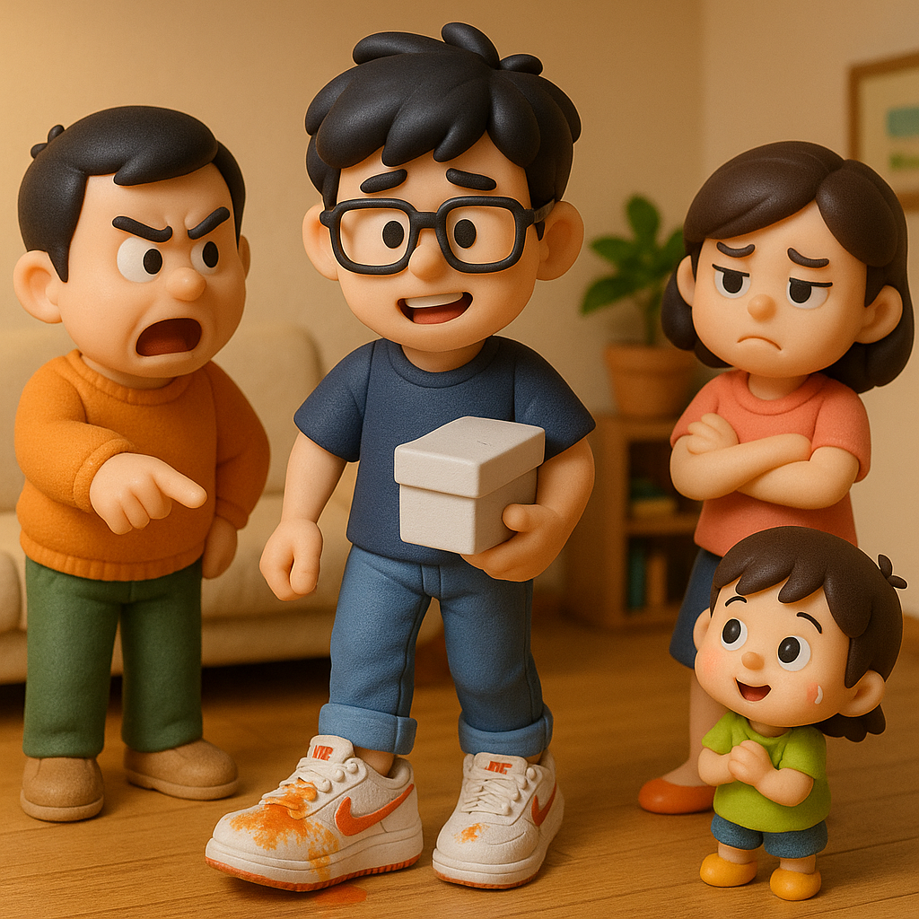 김칫국물 범벅이 되어 돌아온 운동화를 보고 할 말을 잃었답니다.