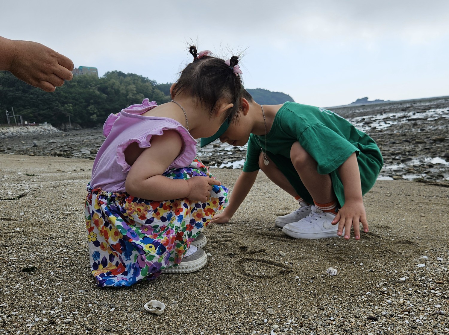 3세 셋째딸은 고동 줍느라 옹알이 폭발! 🤣🤣
