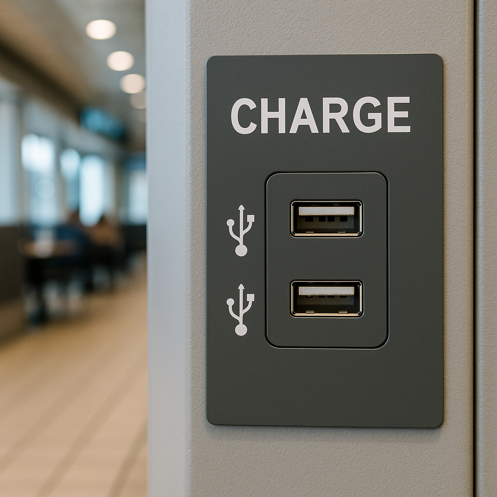 공공장소에 있는 USB 포트 말고, 그냥 일반 콘센트 찾는 게 좋아요.