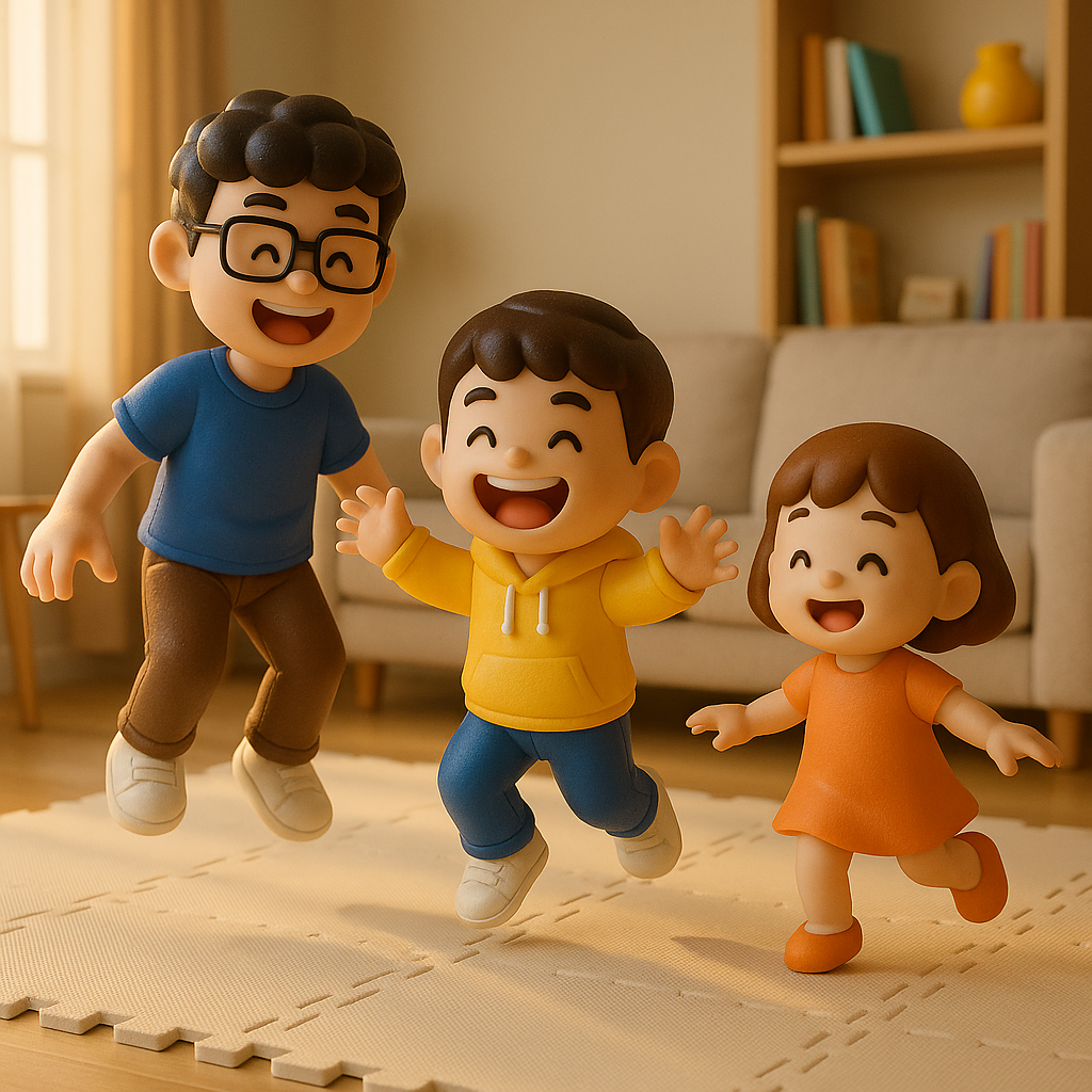 안녕하세요!!용용이네 아빠예요😊저희 아이들이 원래 좀 극성맞긴 했지만, 최근 들어 실내에서 뛰어 노는 게 늘었어요. 갓 서른 된 큰아들 (아, 고3!(19세) 정정할게요 ㅋㅋㅋㅋㅋㅋ) 도 가끔 흥분하면 방방 뛰는 건 똑같더라고요? 어쨌든, 한창 뛰어놀 나이인 7살 둘째 아들이랑 3살 셋째 딸이 온 집을 헤집고 다니면… 아, 진짜 🤪 저희 반려견 두리까지 합세해서 꼬리 흔들며 발 구르면…상상만 해도 땀나네요. 😂"너희가 뛰면 아랫집에 피해가 가니까 뛰지 말고 놀자~"설명도 해주고, 온몸으로 막아서 타일러도 보지만, 잘 안 듣는 게 아이들이죠. 맞아요, 내 말을 안 듣는 건 아니지만 '듣는 척'하다가 돌아서면 원점! 아~ 정말!🤦‍♂️ 결국엔 소리를 지르고 화도 내게 되지요… (20초 간격으로 한 번..